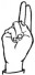 На ћирилици написано КСЕНИЈА АРКУЛА састоји се из 13 слова [?]. Исписано ћириличном једноручном азбуком за глувонеме:
